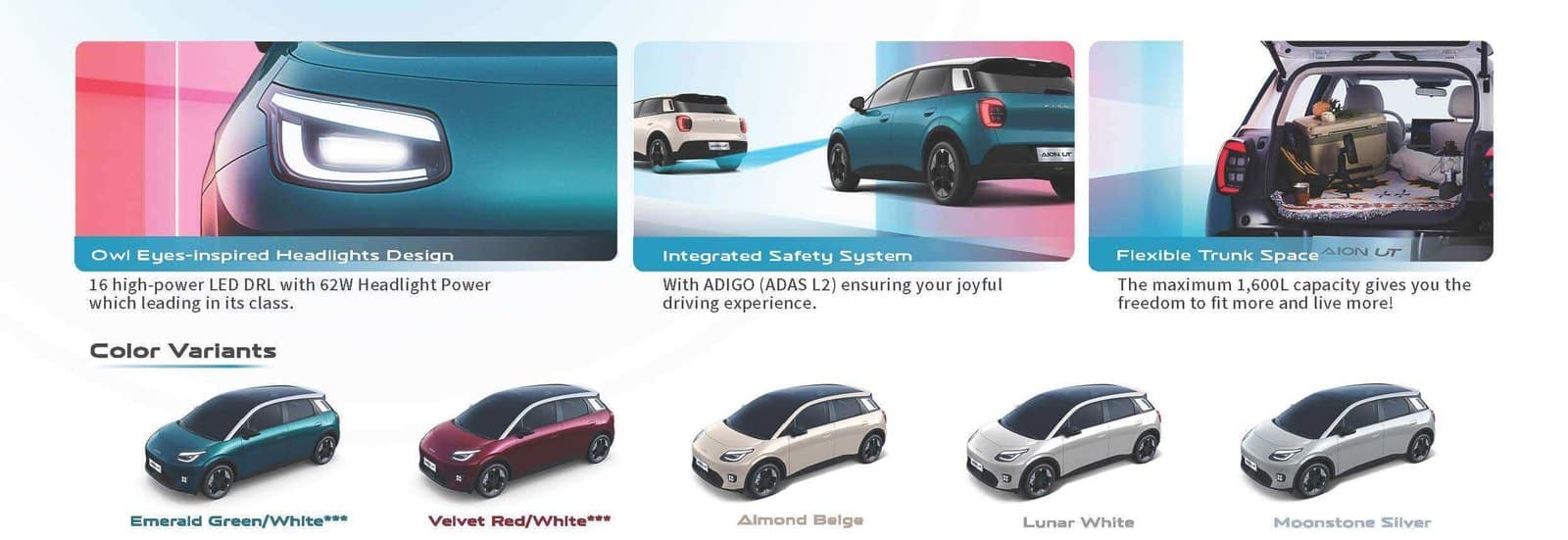 AION UT pelopor kendaraan listrik yang tidak sekadar memamerkan fitur futuristik, tetapi juga menjawab ekspektasi pengendara masa kini: bertenaga, praktis, dan nyaman. Menggendong motor listrik bertenaga 150 kW (setara 201 hp) dengan torsi instan 210 Nm, menciptakan akselerasi yang responsif dalam segala kondisi.